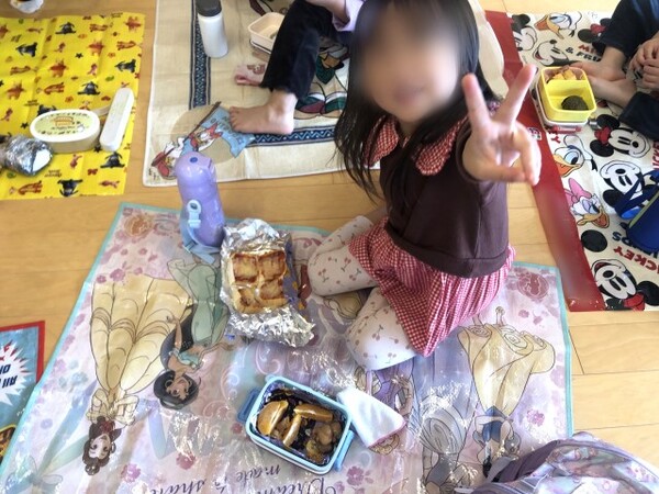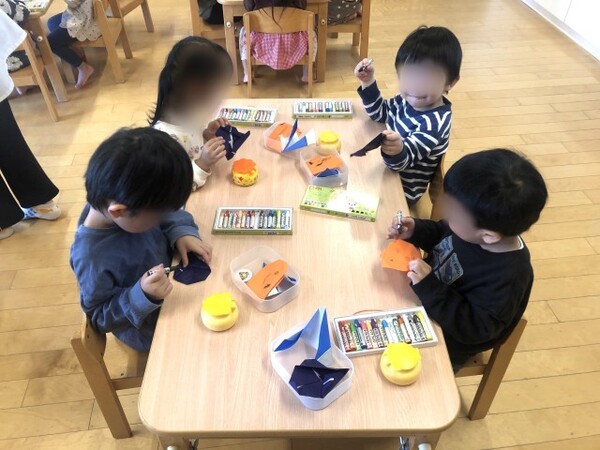 子どもたちは声を合わせて「泣こかい〜?」「飛ぼかいっ!」と泣く真似をしたり跳んだりして、とても楽しそうにしていました。